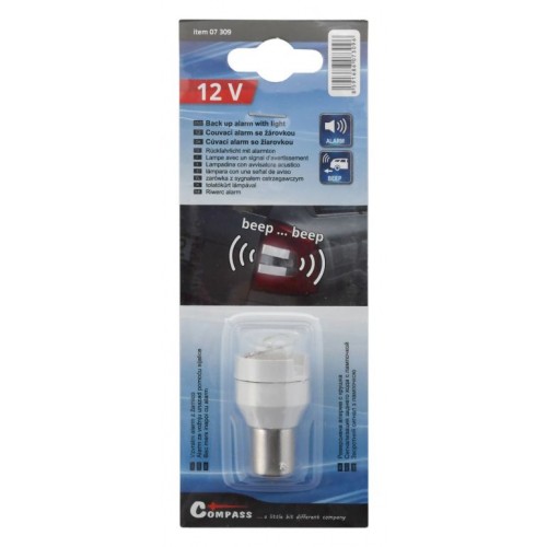 Pri cúvaní vozidla vydáva varovný zvukový signál. Univerzálna pre automobily s napájacím napätím 12 V a žiarovkou spätného svetla s päticou BA15s. Cúvací alarm je osadený žiarovkou 12 V (celosklo).