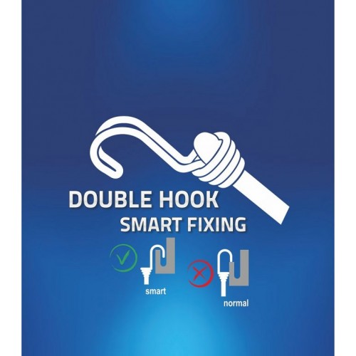 Vysoko kvalitný pružný upínač s homologizáciou TÜV/GS, zakončený dvojitými kovovými hákmi Smart Fixing. Tento pružný upínač sa môže pochváliť extra pevným jadrom s prierezom s priemerom 10 mm, zakončený zdvojenými, kovovými hákmi SMART FIXING, ktoré sa vyznačujú tvarom uľahčujúcim zachytenie na miestach, bežne nedostupných pre háky klasické. Balenie obsahuje jeden upínač dĺžky 200 cm, ktorý ponúka pevnosť v ťahu 120 N a pretiahnutie až o polovicu svojej dĺžky až do 300 cm.