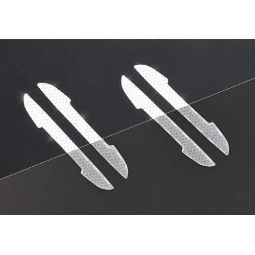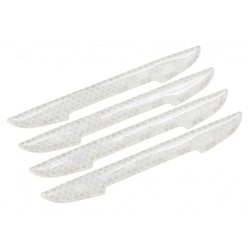 Chránič dverí s reflexnými vlastnosťami so silnou lepiacou časťou a odolným povrchom. Samolepka je vhodná na nalepenie na očistené neporézne povrchy. Lepenie je možné aj na mierne tvarované povrchy. Prilepenie je ľahké a rýchle.