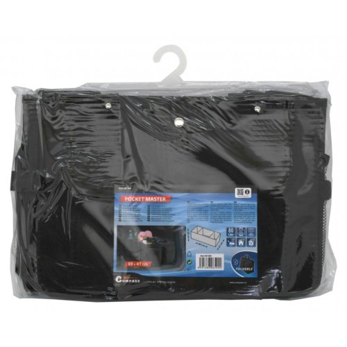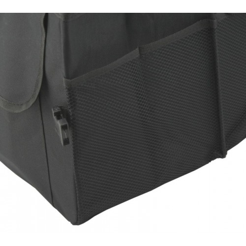 Skladací, trojdielny organizér do kufra automobilu s objemom 80 l. Organizér s rozmermi 69 x 29 x 41 cm je zhotovený z kvalitne obšitého 100 % polyesteru. Čelná strana je opatrená dvoma objemnými vreckami, zadná strana objemným vreckom na suchý zips. Na jednej strane je organizér doplnený o sieťové vrecko a na strane druhej ďalšími vreckami. Po naplnení organizéra je možná manipulácia vďaka našitým držadlám. Spodná časť je opatrená dvoma našitými suchými zipsami, ktoré zabezpečujú organizér na danom mieste, bez nechceného pohybu. Pre zloženie je možné pomocou cvočkov zocvaknúť a zmenšiť tak rozmer organizéra, pokiaľ ho práve nepoužívate.