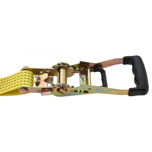 Račňa je celokovového prevedenia s odolným istiacim mechanizmom, opatreným plastovým madlom pre pohodlnú manipuláciu a ovládanie. Popruh šírky 50 mm s dĺžkou 6 m sa vyznačuje pevnosťou v ťahu 5000 kg (po obopnutí nákladu). Pri upínaní nákladu odporúčame používať plastové rohy alebo ochranné návleky. Bez použitia ochranných návlekov, alebo rohov, dochádza k zníženiu pevnosti upínacích pásov ak opotrebovaniu popruhu. Upínacie pásy nie je povinné evidovať, nemusia sa vykonávať revízie, ale odporúčame ich minimálne 1x ročne prehliadnuť riadne preškolenou a preskúšanou osobou.