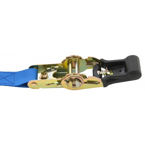 Račňa je celokovového prevedenia s odolným istiacim mechanizmom a poplastovanou rukoväťou pre pohodlnú manipuláciu a použitie. Popruh šírky 25 mm s dĺžkou 5 m sa vyznačuje pevnosťou v ťahu 700 kg (po obopnutí nákladu). Pri upínaní nákladu odporúčame používať plastové rohy alebo ochranné návleky. Bez použitia ochranných návlekov, alebo rohov dochádza k zníženiu pevnosti upínacích pásov a k opotrebovaniu popruhu.