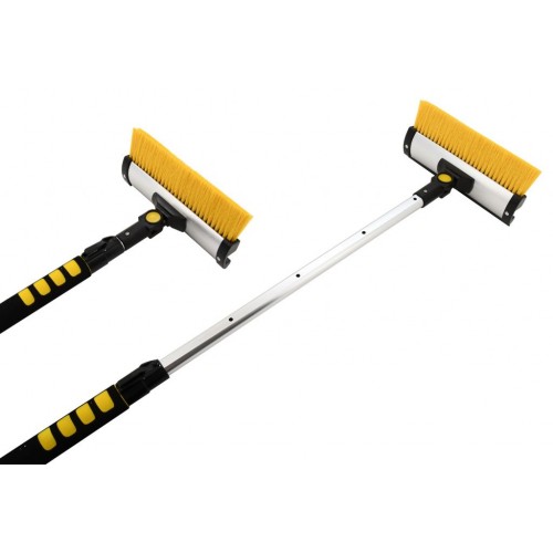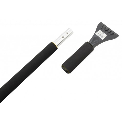 Robustná škrabka + stierka + metlička, ideálna pre nákladné vozidlá a autobusy. Hliníková konštrukcia, otočná stierka s metlou, odnímateľná škrabka na ľad. Teleskopická rukoväť. Rukoväť potiahnutá penovým krytom po celej dĺžke.