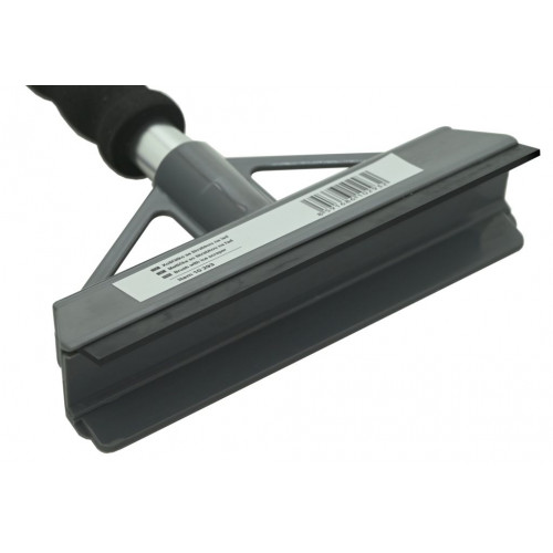 Škrabka s metličkou dĺžky 60 cm. Jeden koniec je opatrený metličkou dĺžky 21 cm, druhý koniec je opatrený gumovou stierkou a škrabkou šírky 13,5 cm.