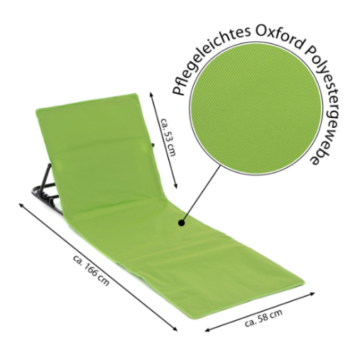 Premeňte každý moment strávený vonku na relaxačný zážitok – táto polstrovaná plážová podložka so zeleným operadlom vám poskytne pohodlný odpočinok na pláži, pri kempovaní alebo v záhrade. Je ľahká, prenosná a vkusne ladí s prírodou a vaším štýlom.