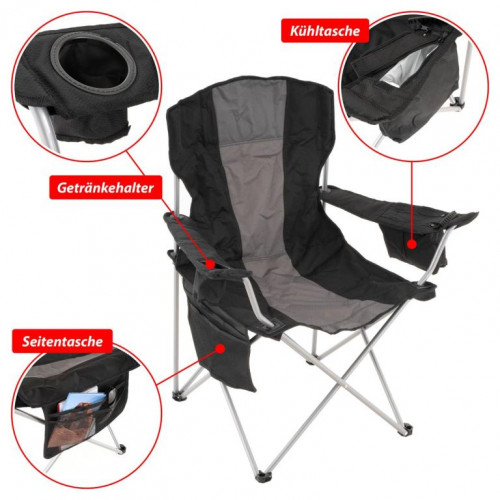 Skladacia kempingová stolička XL s chladiacou taškou, čierna