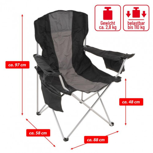 Rybárčite, radi kempujete, ste nadšenými návštevníkmi športových či kultúrnych podujatí a zároveň túžite po pohodlí? Čítajte ďalej, táto ponuka je určená práve pre vás! Veľmi ľahučká, ale stabilná, skladná a praktická skladacia kempingová stolička, čaká práve na vás. Počas chvíle máte rozložené, zložené a naložené, je len na vás, kde sa pohodlne usadíte a vychutnáte si chvíle odpočinku. Stolička má niekoľko úložných priehradiek: chladiacu tašku, bočné vrecko na noviny, okuliare a nechýba ani držiak nápojov v podrúčke. Polyesterová tkanina záhradného kresla je vodoodpudivá a udrží až 110 kg. Užijete si svoju akciu, zložíte stoličku, vložíte do prenosnej tašky s popruhom a ľahko odnesiete. Užívajte si život v pohodlí!