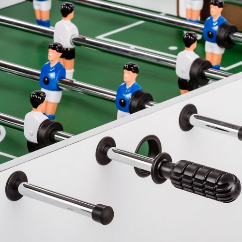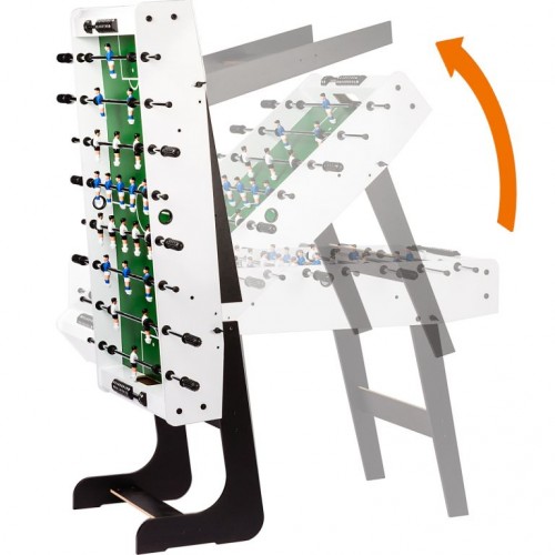 Hlavným rysom tohto modelu je sklopný mechanizmus. Môžete ho tak veľmi úsporne uložiť po skončení hry iba niekoľkými pohybmi. Je zaistený dvomi poistkami, ktoré zabezpečujú stabilitu nôh pri postavení. Stolný futbal Belfast je vybavený protišmykovými, ergonomicky navrhnutými rukoväťami pre príjemnú hru. Má takisto vyvýšené rohy ihriska, ktoré zabránia uviaznutiu loptičky v rohu.