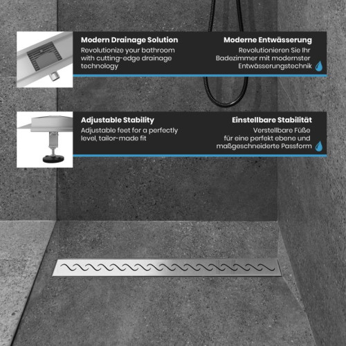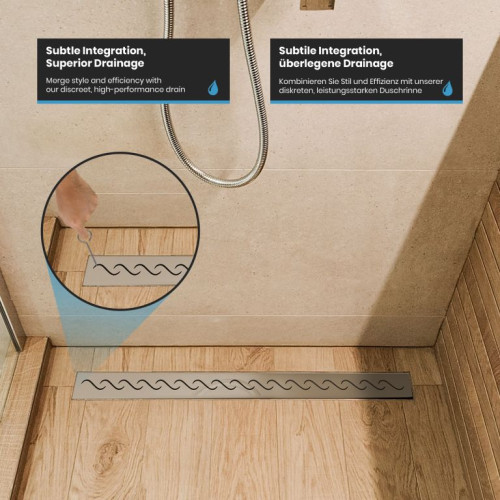 Premeňte svoju kúpeľňu na oázu štýlu a inovácie s našimi vynikajúcimi lineárnymi sprchovými odtokmi. Najvyššia kvalita nehrdzavejúcej ocele, umne leštená, v kombinácii s pieskovaným telom. Váš kúpeľňový dizajn si zaslúži niečo výnimočné, preto sú naše sprchové odtoky navrhnuté nielen tak, aby zaujali, ale aj inšpirovali svojou odolnosťou. Vďaka zapustenému povrchovému materiálu garantujeme produkt, ktorý vydrží skúšku času. Inštalácia je rýchla, nekomplikovaná a nevyžaduje batérie. Mysleli sme na všetko, aby ste sa mohli bez obáv sústrediť na to, čo je dôležité. Vylepšite formu a funkciu svojho sprchového kúta s našim elegantným a odolným lineárnym sprchovým odtokom, ktorý dodá vašej každodennej rutine sofistikovanosť.