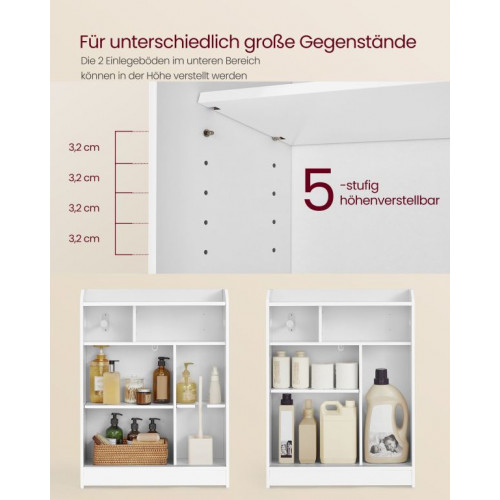 Vytvorte si poriadok a štýl aj v malej kúpeľni. Táto úzka skrinka je ideálna na efektívne využitie priestoru vedľa toalety. Šesť vnútorných priehradok umožňuje prehľadné uloženie všetkých nevyhnutností, vrátane toaletného papiera aj kefy. Elegantný biely dizajn ľahko zapadne do každého interiéru a prinesie svieži vzhľad.
