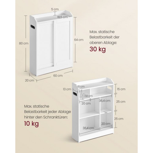 Úzka kúpeľňová skrinka s posuvnými dverami 60x20x80 cm biela