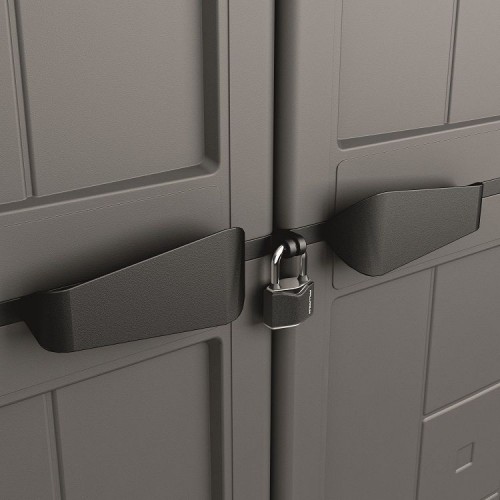 Výhodou skrine sú ľahko posúvateľné poličky aj prispôsobenie na visiaci zámok. Má jednoduchú montáž bez potreby náradia, je uzamykateľná na visiaci zámok (nie je súčasťou balenia). Poličky ľahko posuniete nahor alebo nadol podľa svojich potrieb.