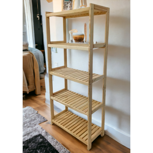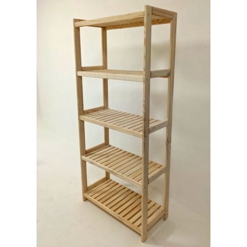 Drevený regál s 5 policami, 173 × 70 × 33 cm, borovica