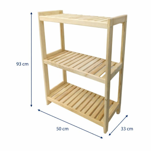 Drevený regál s 3 policami, 93 × 50 × 33 cm, borovica, český