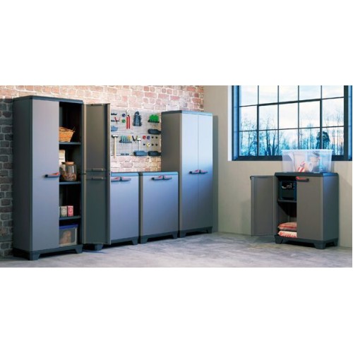 Menšia plastová policová skrinka s nosnosťou 15 kg na policu sa ideálne hodí na umiestnenie v dielňach, šatniach, na verandách alebo v garážiach. Je veľmi praktickým pomocníkom na organizáciu rôznych vecí. V skrinke nájdete tri police, ktoré môžete variabilne umiestniť. Nosnosť každej z nich je maximálne 15 kg. Montáž skrinky s policami zaberie približne desať minút. Skrinka je vybavená pevným očkom na pripevnenie visiaceho zámku.