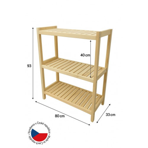 Drevený regál z borovice, 3 police, 93 x 80 x 33 cm, česká