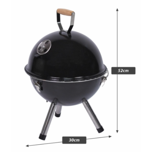 Tento kompaktný okrúhly gril – vysoký približne 45 cm (52 cm vrátane rukoväte), s priemerom 30 cm, celokovovou konštrukciou, uzatvárateľným vekom, drevenými rukoväťami a reguláciou prívodu vzduchu – je robustný a ľahko prenosný. Súčasťou balenia je pochrómovaný rošt a vyberateľná miska na uhlie, ktoré zaisťujú praktickú údržbu a rýchle grilovanie aj v stiesnených priestoroch.