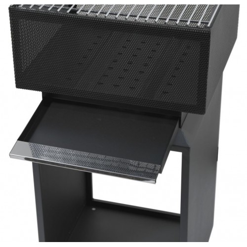 Prenosné ohnisko na drevo CUBE so štvorcovou konštrukciou a úložným priestorom na drevo je vhodné na terasy a záhrady. Konštrukcia ohniska je vyrobená z kvalitnej ocele s vysokoteplotným čiernym náterom. Perforované boky ohniska zaisťujú zaujímavý pohľad na horiaci oheň. Na grilovanie je ohnisko vybavené oceľovým roštom s rozmermi 40 x 35 cm. Pod ohniskom je umiestnený vysúvací popolník na jednoduché čistenie. Súčasťou balenia je aj pohrabáč, ktorý možno využiť aj na nadvihnutie grilovacieho roštu.