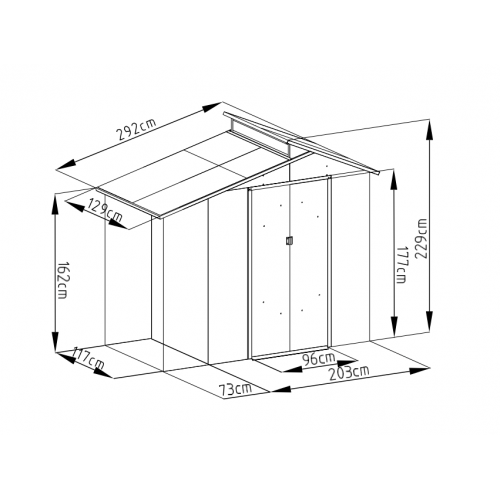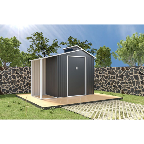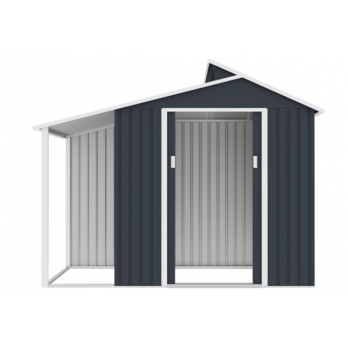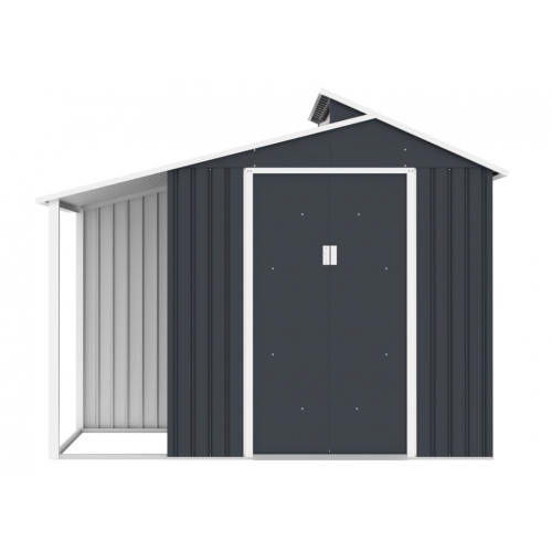 Záhradný domček využijete pre uskladnenie napr. záhradného náradia, kosačky, príslušenstva k bazénu atď. Súčasťou domčeka je aj prístrešok pre bicykle. Moderný design domčeka sa hodí do každej záhrady. Domček má dvojité posuvné dvere, teda do neho budete mať pohodlný prístup. Oceľová, pozinkovaná konštrukcia s ventilačnými mriežkami.