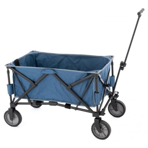 S naším stabilným a praktickým vozíkom môžete ľahko a pohodlne prepravovať svoju batožinu v kempe, Vaše piknikové náčinie pri prechádzkach alebo plážové vybavenie. Vodoodpudivý, pevne tkaný látkový poťah a pevné spracovanie zaručujú nosnosť až do 200 kg. Ďalšia odnímateľná skladacia podlahová rohož poskytuje väčšiu stabilitu a mala by byť pred zložením odstránená. Skladací vozík možno ľahko prepraviť na miesto použitia, otvoriť a okamžite použiť.