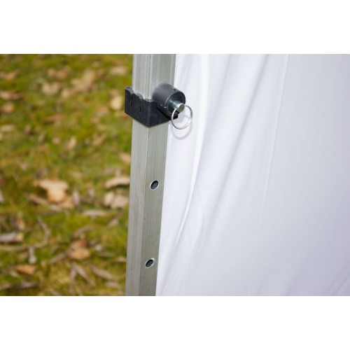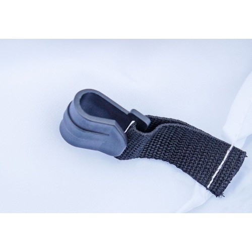 - bočné steny sú pripevnené k nohám prostredníctvom suchých zipsov a k hornej hrane konštrukcie pomocou háčikov (viď fotografie)