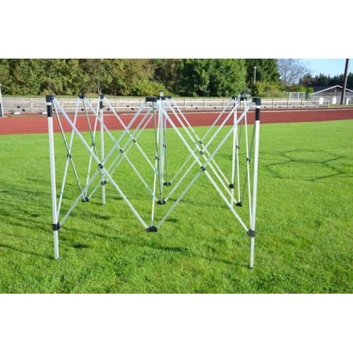 Tento záhradný stan je ideálny na všetky možné akcie - na záhradné oslavy, dovolenku, firemné večierky, stánkový predaj alebo na zastrešenie aparatúry na festivaloch. Vďaka nožnicovej konštrukcii možno stan zostaviť aj zložiť počas pár minút. Stanová konštrukcia je obdĺžnikového tvaru v šikovnej prenosnej taške, takže nie je problém s ňou cestovať. Záhradný stan Vás ochráni pred priamym slnečným žiarením, ľahkým dažďom alebo inak nepríjemným počasím.
