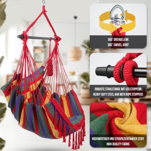 MIADOMODO Závesné hojdacie kreslo, farebné, dovnútra aj von