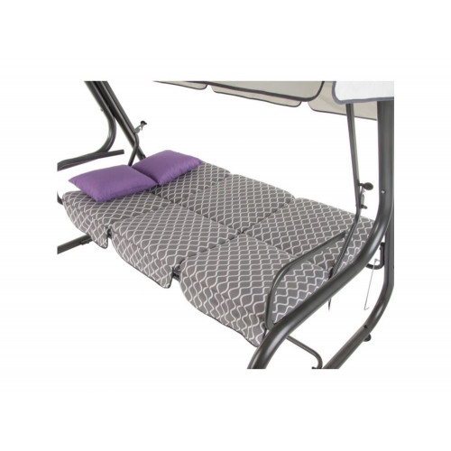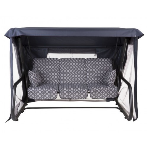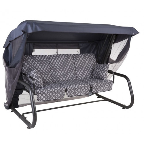 Hojdačka je určená pre 4 osoby s rozkladacou sedačkou, ktorá je upevnená na pružinách. Robustná, výkonná konštrukcia hojdačky, hrúbka nosnej rúrky: Ø 63 x 1,5 mm. Rám maľovaný práškovou polyesterovo-epoxidovou farbou v antracitovom odtieni. Sedadlo je možné sklopiť do polohy ležmo na chrbte. Strieška na hojdačku Venezia s moskytiérou vyrobená z polyesteru má špeciálne tunely prispôsobené k strešnej konštrukcii hojdačky. Farba striešky: svetlosivá. Moskytiéru možno odopnúť. V sade s hojdačkou sú tiež 3 ks sedákov.