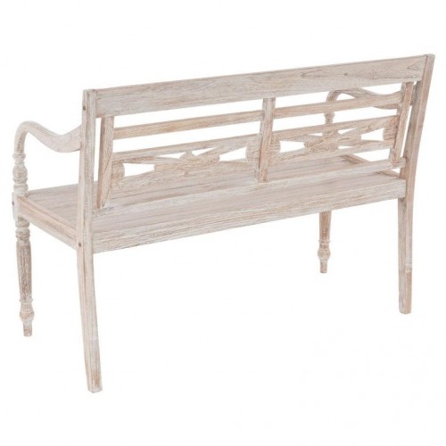 DIVERO 2-miestna lavica - 119 cm, teak, biela shabby