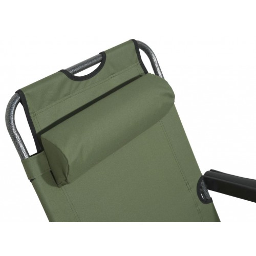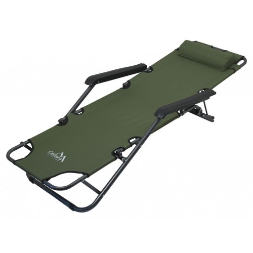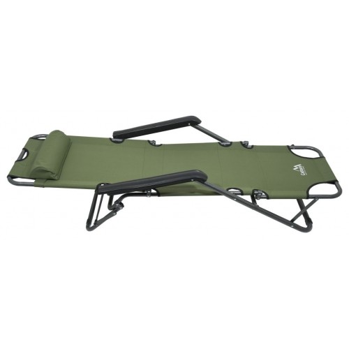 Lehátko je možné používať konvenčným spôsobom alebo ho môžete zložiť do podoby rybárskeho kresla, ktoré ocení každý outdoorový nadšenec. Ležadlo je vybavené výškovo nastaviteľným vankúšom a opierkami rúk pre maximálne pohodlie.
