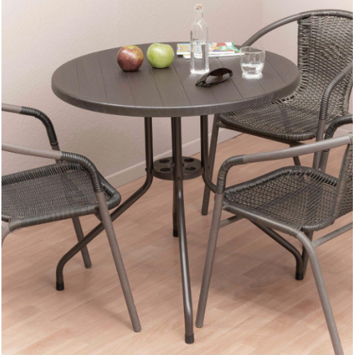 Zažite pohodové chvíle s rodinou či priateľmi na čerstvom vzduchu. Tento okrúhly bistro stôl je skvelou voľbou pre každého, kto hľadá praktický a štýlový doplnok do exteriéru. Jeho hnedá doska v drevenom vzhľade krásne zapadne do každého prostredia.