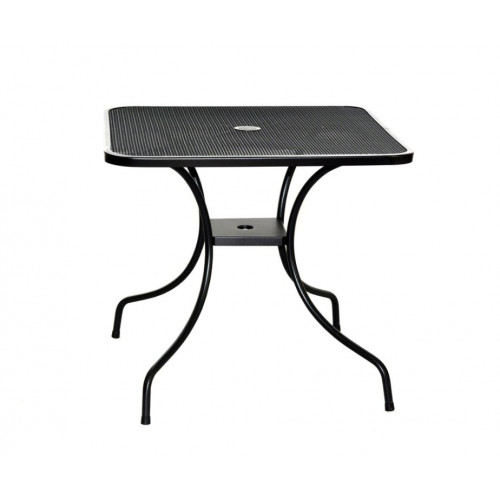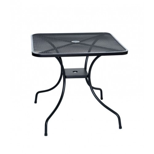 Kovový záhradný stôl s drôtenou vrchnou doskou štvorcového tvaru. Výborne sa kombinuje so všetkými typmi kovového záhradného nábytku. Je ľahko udržiavateľný a umývateľný.