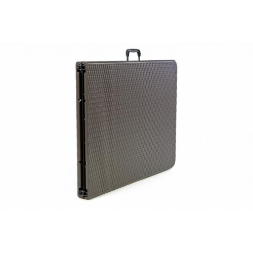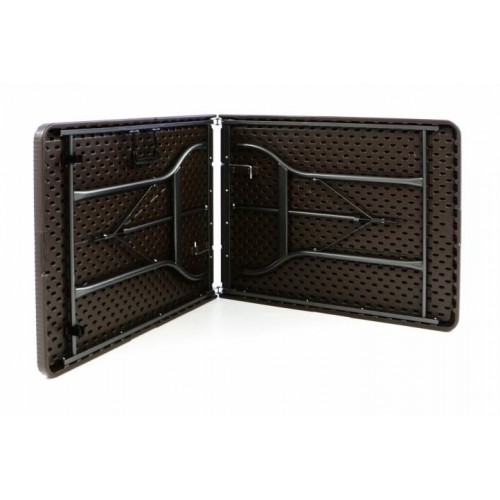 Hnedý skladací stôl Vás zaujme svojím ušľachtilým designom v ratanovom vzhľade. Stôl je postavený počas okamžiku. Pre väčšiu stabilitu sú na spodnej strane umiestnené bezpečnostné čapy. Stôl si môžete vziať so sebou na akúkoľvek párty - integrované držadlo umožňuje jednoduchý transport.