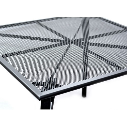 Kovový záhradný stôl s drôtenou vrchnou doskou štvorcového tvaru. Výborne sa kombinuje so všetkými typmi kovového záhradného nábytku. Je ľahko udržiavateľný a umývateľný.