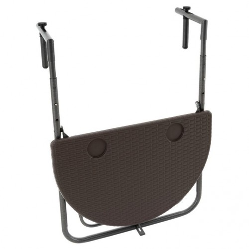 Vďaka nášmu závesnému stolíku, ktorý môžete sklopiť, ušetríte miesto. Použitý materiál zaisťuje, že je stolík odolný a nevyžaduje špeciálnu údržbu, môže preto zostať vonku za každého počasia. Či už ako konferenčný stolík alebo ako stolík na rastliny - vyzerá vždy dobre. Výška stola je nastaviteľná a závisí na výške zábradlia.