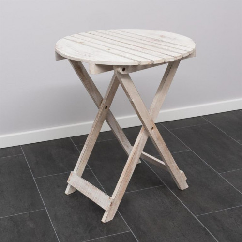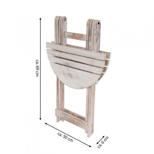 Plamene vytvárajú na dreve charakteristický vzhľad, ktorý definuje rustikálne kúzlo vintage nábytku. Drevený stôl je skladací a možno ho ľahko uložiť, aby sa ušetril priestor. Stôl má priemer 50 cm a výšku asi 60 cm. Skladací stôl sa dodáva vopred zmontovaný.