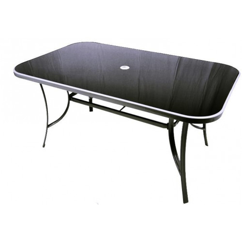 - oceľový stôl so sklenenou doskou a otvorom na slnečník