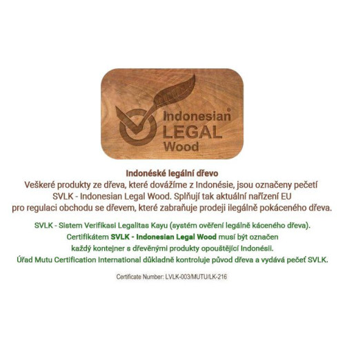 Teakové drevo je robustné tropické drevo odolné voči poveternostným vplyvom, ktoré je vďaka svojim vlastnostiam veľmi vhodné pre vonkajšie použitie. Ak chcete zachovať krásu svojho záhradného nábytku, odporúčame drevo pravidelne ošetrovať pomocou nášho teakového oleja. Neupravené, teakové drevo nakoniec získa známu striebornno-sivú patinu.