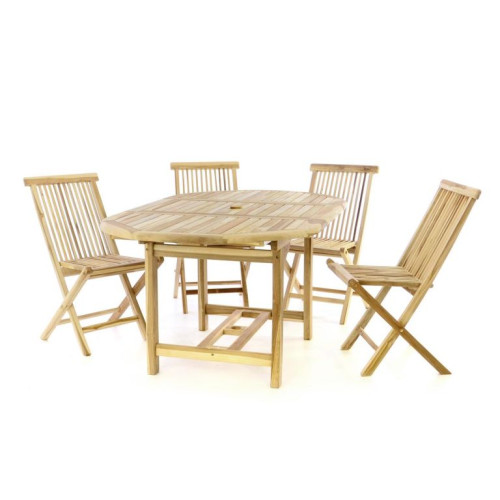 Záhradný set DIVERO z teakového dreva - stôl + 4 stoličky