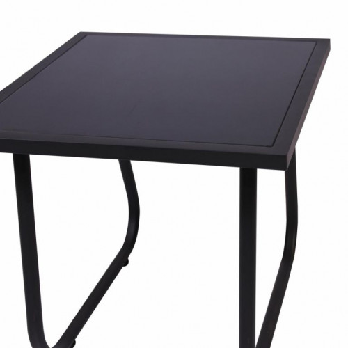Záhradný set sa skladá z dvoch relaxačných kresiel a stola s priesvitnou doskou z tónovaného skla. Kombinácia stoličky-stôl je preto ideálna pre spoločenské stretnutia na vašej záhrade alebo zimnej záhrade, na balkóne alebo terase. Nábytok vyrobený v kombinácii oceľ-textil sa vyznačuje elegantným vzhľadom a praktickou funkčnosťou. Každá stolička je vyrobená z lakovanej ocele a nabáda k pohodlnému sedeniu. Sedák a operadlo stoličiek tvorí čierny elastický poťah s textíliou odolnou voči poveternostným vplyvom. Jedná sa o ľahkú, robustnú plastovú tkaninu, ktorá sa ľahko udržuje a odolá mnohým poveternostným vplyvom. Sklenený stôl je veľmi stabilný, ľahko sa čistí a má dosku z priesvitného bezpečnostného skla. Zaoblené, zakrivené nohy robia stôl vizuálne zaujímavým. Robustný rám stola je taktiež vyrobený z ocele a má povrchovú úpravu v šedom laku.