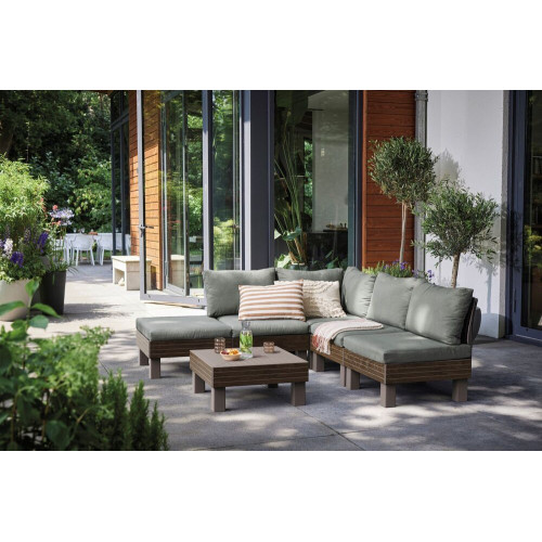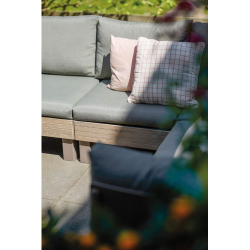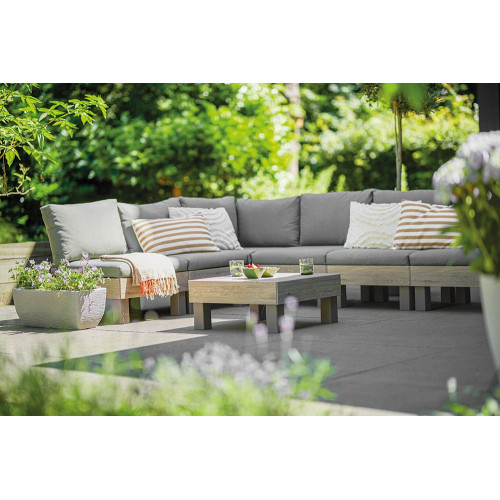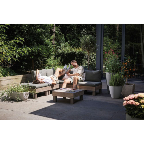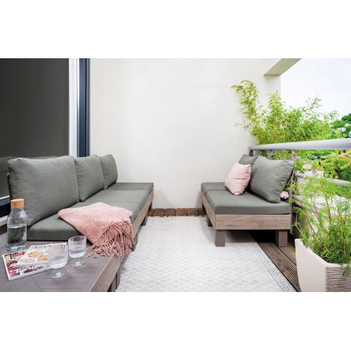 Vytvorte si dokonalé vonkajšie posedenie presne podľa svojich predstáv. Sada ELEMENTS ponúka maximálnu flexibilitu vďaka dômyselnému modulárnemu systému, ktorý umožňuje ľahko meniť usporiadanie podľa aktuálnych potrieb. Pohodlné vankúše a opierky z príjemnej polybavlny zaručia relaxáciu v záhrade aj na terase, či už si chcete užiť chvíle s rodinou alebo priateľmi.