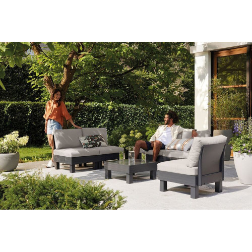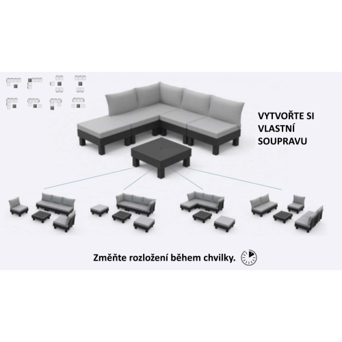Vytvorte si dokonalé vonkajšie posedenie presne podľa svojich predstáv. Sada ELEMENTS ponúka maximálnu flexibilitu vďaka dômyselnému modulárnemu systému, ktorý umožňuje ľahko meniť usporiadanie podľa aktuálnych potrieb. Pohodlné vankúše a opierky z príjemnej polybavlny zaručia relaxáciu v záhrade aj na terase, či už si chcete užiť chvíle s rodinou alebo priateľmi.