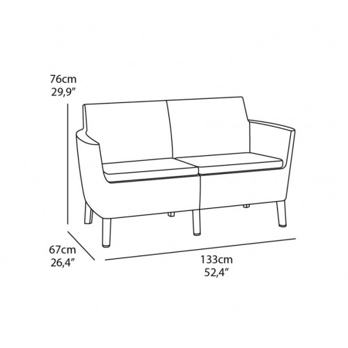 Salemo je úplná novinka na trhu, súprava ktorá skvele vynikne v modernom aj retro štýle bývania. Jedná sa o elegantný set v imitácii ratanu, skladajúci sa z dvoch kresiel, dvojitého gauča a stola, ktorý navyše slúži ako úložný box. Produkt je dodávaný s pohodlnými vankúšmi v štýlových farbách. Ľahká a stabilná konštrukcia nábytku sa skvele hodí do exteriéru aj interiéru. Set je veľmi jednoduchý na údržbu. Výrobok je vysoko odolný proti UV lúčom a poveternostným vplyvom.