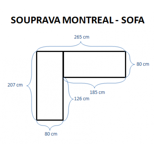 - rozmery sofa: ľavé (š) 207 x (d) 80 x (v) 73 cm, pravé (š) 185 x (d) 80 x (v) 73 cm