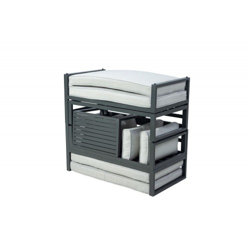 Luxusná súprava s hliníkovou konštrukciou, ktorá je pokrytá šedou práškovou farbou. Moderný design. Súprava má veľmi široké využitie. Je vhodná pre vnútorné aj vonkajšie priestory, záhrady, terasy, zimné záhrady či balkóny. Podsedáky aj vankúše sú vybevené zipsami, takže je možné poťah zložiť. Jednoduché zostavenie a zloženie. V zloženom stave zaberie minimum miesta.