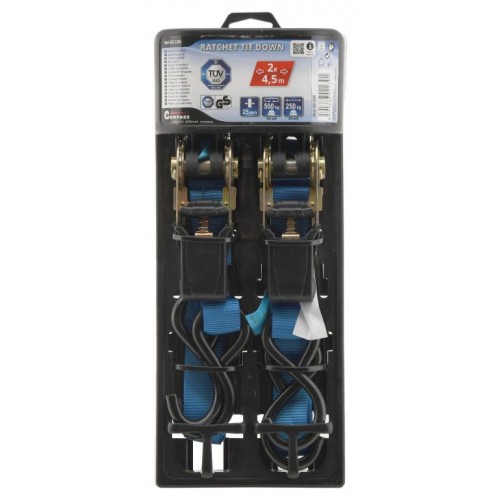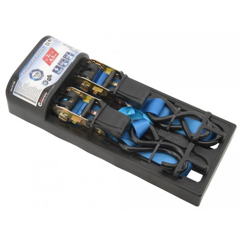 Na upnutie sa využíva celokovová račňa s istiacim mechanizmom. Konce popruhov sú osadené hákmi, potiahnutými tvrdeným plastom pre lepšiu manipuláciu. Popruh tak nájde široké uplatnenie pri upevňovaní predmetov. Zaistite si správnu bezpečnosť nákladu.